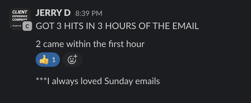 "Got 3 hits in 3 hours of the Email"