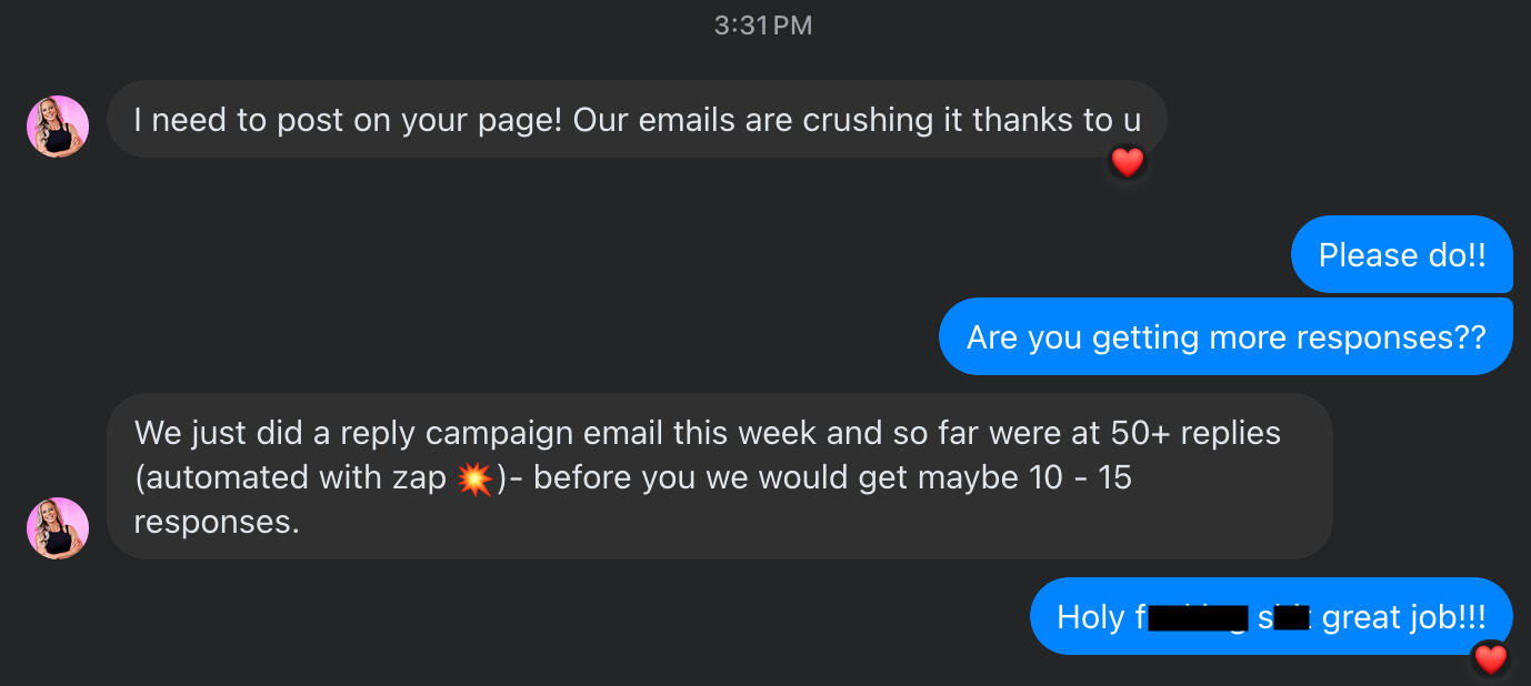 email this week and so far we're at 50+ replies - before you we would maybe get 10 - 15 responses.